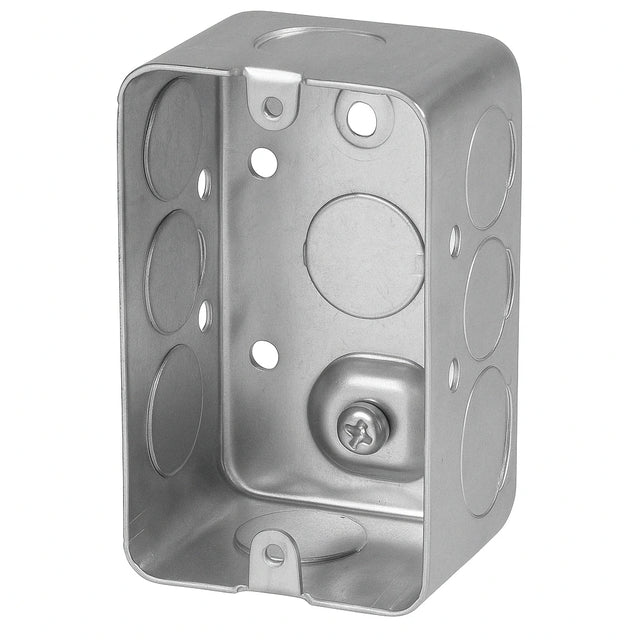 4" H x 2-3/8" W x 1-7/8" D, 12.5 cu in capacity. Surface mount utility box with raised ground screw.