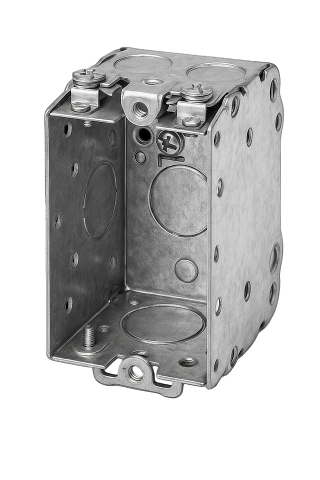 3" H x 2" W x 2-1/2" D, 12.5 cu. in. capacity. Gangable device box with recessed ears and 1/2" and 3/4" concentric knockouts.